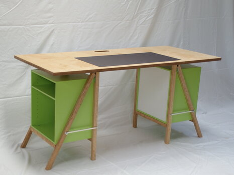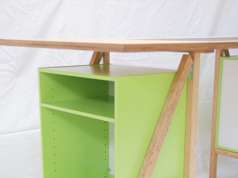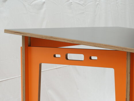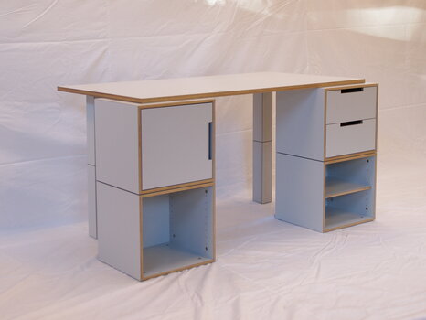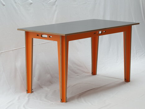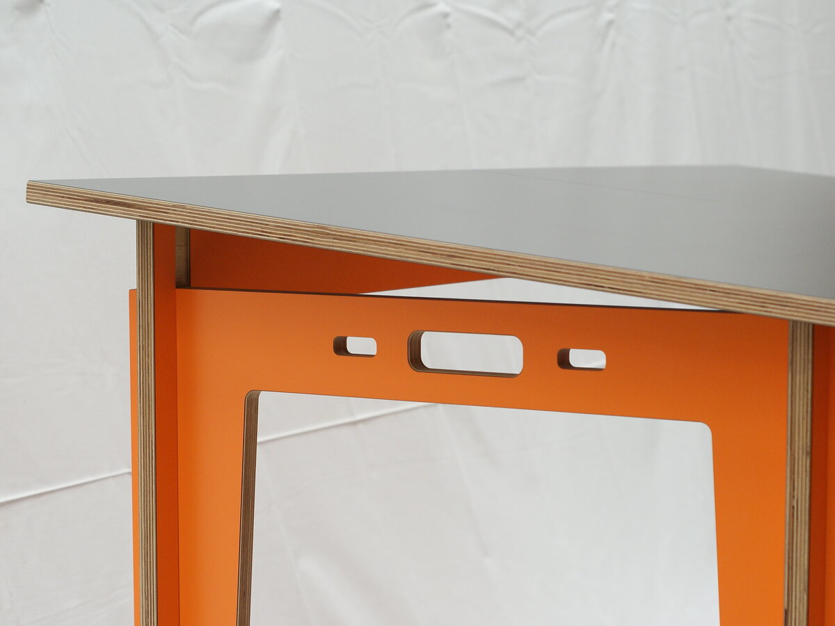 Arbeitsmöbel in den Flachkarton hinein konstruiert